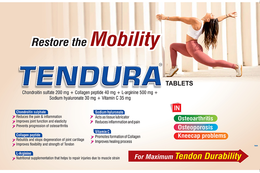 Tendura is all about quality life style and movement. The perfect combination of Tendura ensures patients complacence and prominent activity where it matters most, like Joint and Muscle – keeping strength, flexibility and elasticity, supporting recovery from wear and tear damage or injuries Cartilage – supporting repair and fluids for cushion and elasticity. Maintains integrity of the joints Useful in bone health, joint pain and low back pain